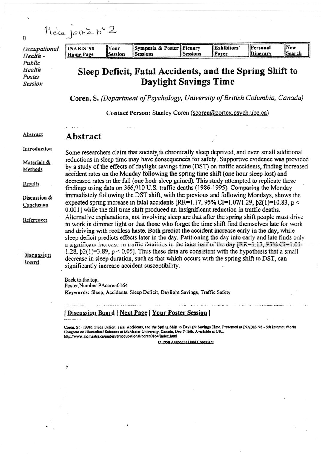 - au Canada, l'augmentation du nombre des accidents de la circulation (COREN),