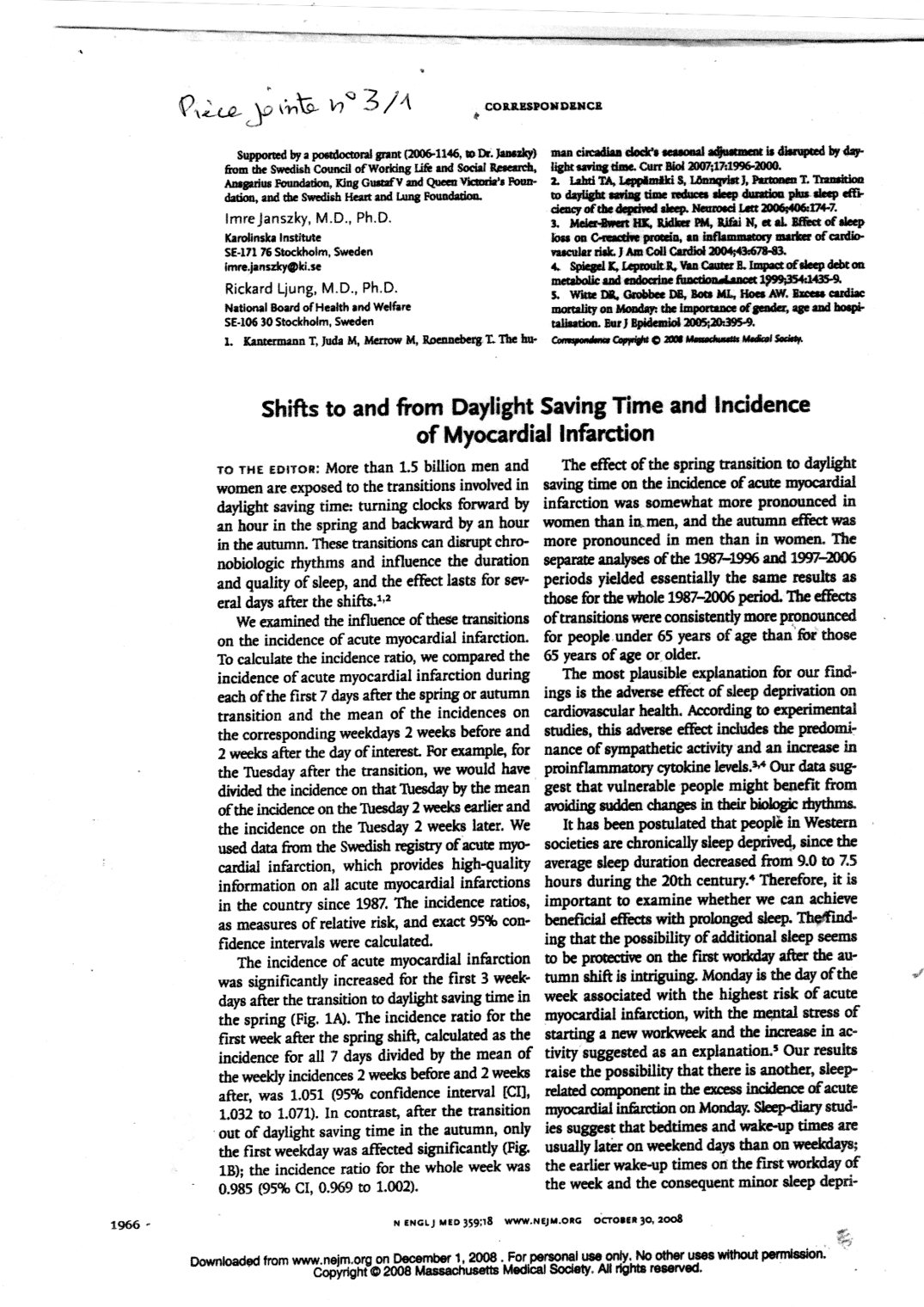 - en Suède, l'augmentation du nombre des crises cardiaques (JANSZKY et