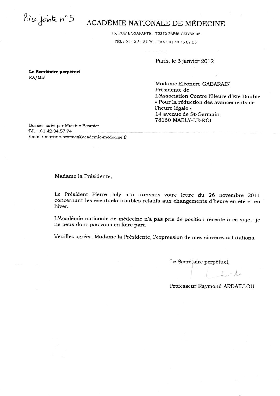 Voir à ce sujet la récente lettre (PJ n°5) de l'Académie,