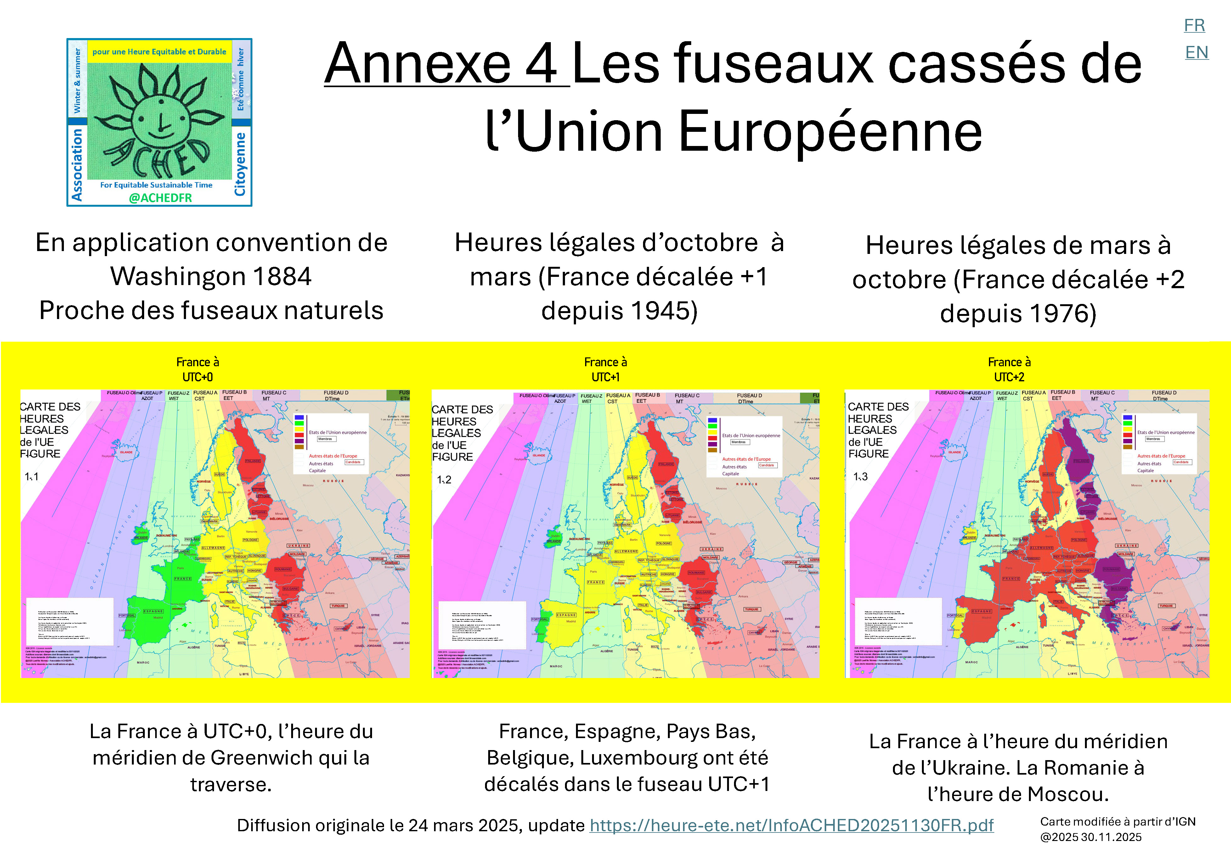 Pour visualiser l'infographie ici. ℹ️ Faites défiler la récente infographie de l’ACHEDFR sur les choix horaires / impacts / opportunités coté santé, énergie et climat. Vous pouvez voir ci-dessous le PDF complet ou les pages en images. Ceci est une mise à jour de l'infographie élaborée pour nos lettres du printemps 2025. Elle est aussi disponible en version anglaise.